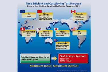 We can provide services to support registration application for Japan-EU-U.S.-Asia quadrulateral chemical regulations . We can also provide strategic consulting services on required tests for application.