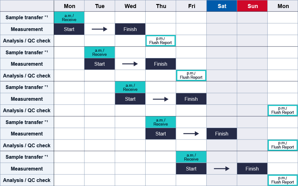 - *1 Sample receipt and start of testing are available from Monday to Friday (excluding public holidays and closed days).