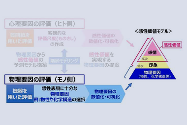 当社では、長年培った、物理計測の評価技術に加え、感性工学・心理学・統計学などの科学に基づき、人のの感性価値を評価して、製品開発を支援いたします。