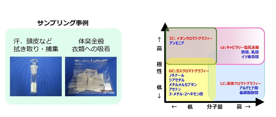 | 部位 | 主なにおい | 特徴的な成分 | サンプリング例 | 測定装置 |