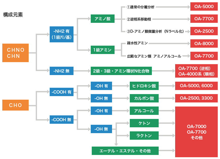 構成元素からSUMICHIRALカラムの選択スキームを示します。