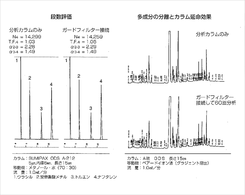 カラムの前に接続使用することにより、カラムの劣化を抑制します。