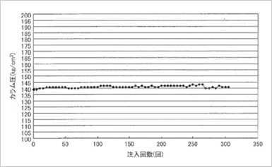 ガラスフィルター単独、金属焼結フィルター単独の場合、いずれも注入回数が300回を越えてもカラム圧がほとんど上昇しないことから、移動相に添加されたシリカ粒子は、ガラスフィルター、金属焼結フィルターでは濾過されておらず、カラム本体も通過していると考えられます。各フィルター単独では0.1μmシリカ粒子を濾過(捕捉、排除)する能力がほとんど無いと言えます。