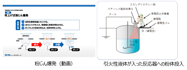 | 粉じん爆発 | 一般的な有機粉体の爆発性、アルミ粉末の爆発性 |
