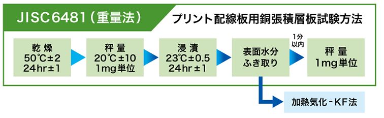 一般的にはJIS C 6481(重量法)で測定されますが、高感度な測定には加熱気化-KFや水分吸脱着測定等が有効です。
